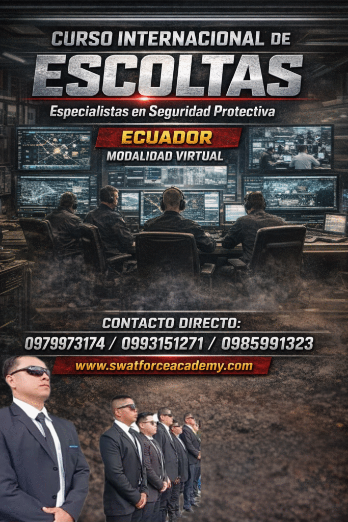 Éste curso ha sido diseñado por: Operadores expertos de Seguridad Especialistas en Protección VIP, CI ITOP, con labores en ECUADOR, COLOMBIA, VENEZUELA,BOLIVIA, etc., cumpliendo las necesidades operativas en lineamientos internacionales para operaciones de seguridad y protección en zonas de alto riesgo, concluyendo con una Certificación Internacional para el cursante. Dirigido a: • EFECTIVO POLICIAL • EFECTIVO MILITAR • CIVILES • ESCOLTAS